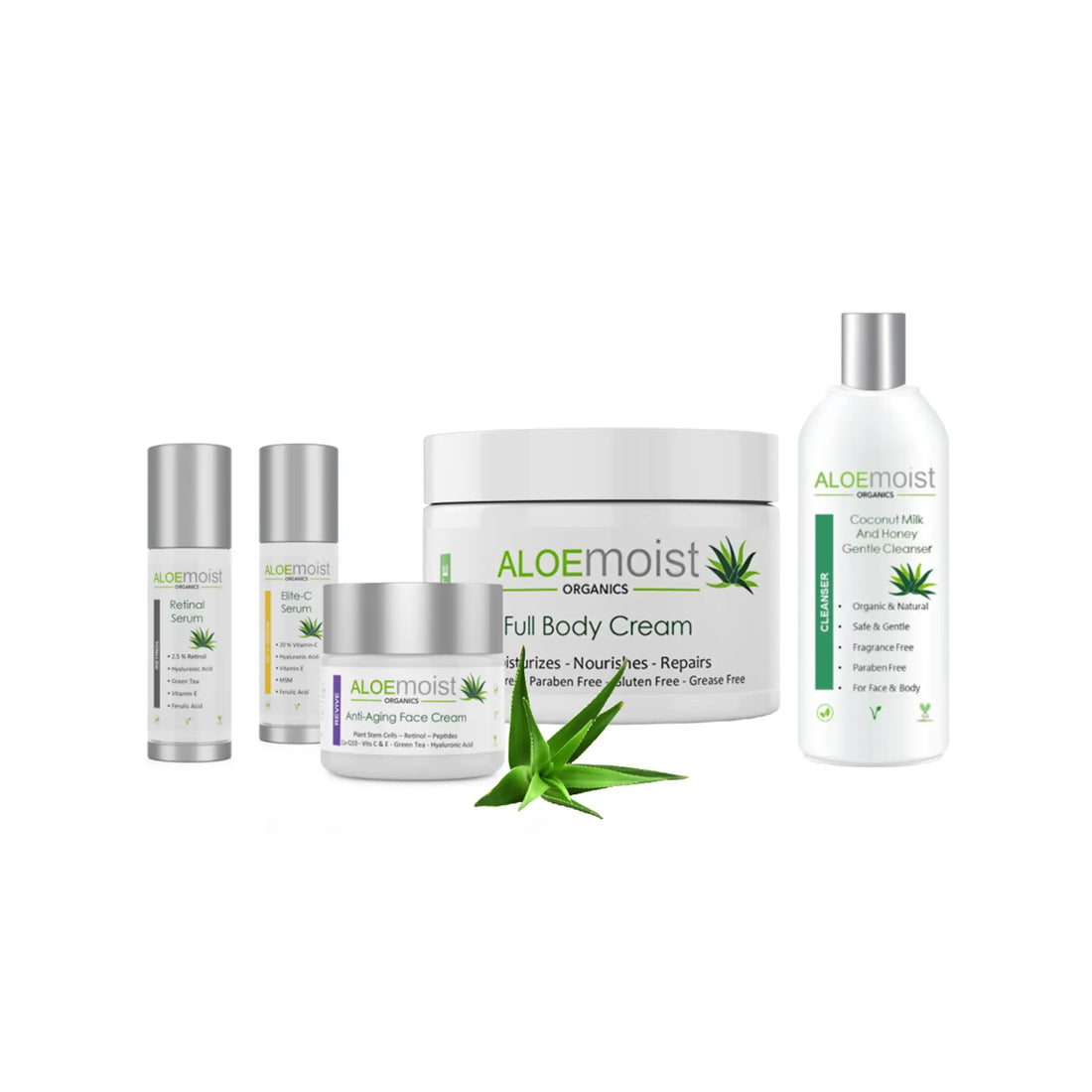 DÚO PARA EL CUIDADO DE LA PIEL – AloeMoist COMPLETO de 8 oz con crema facial antienvejecimiento REVIVE